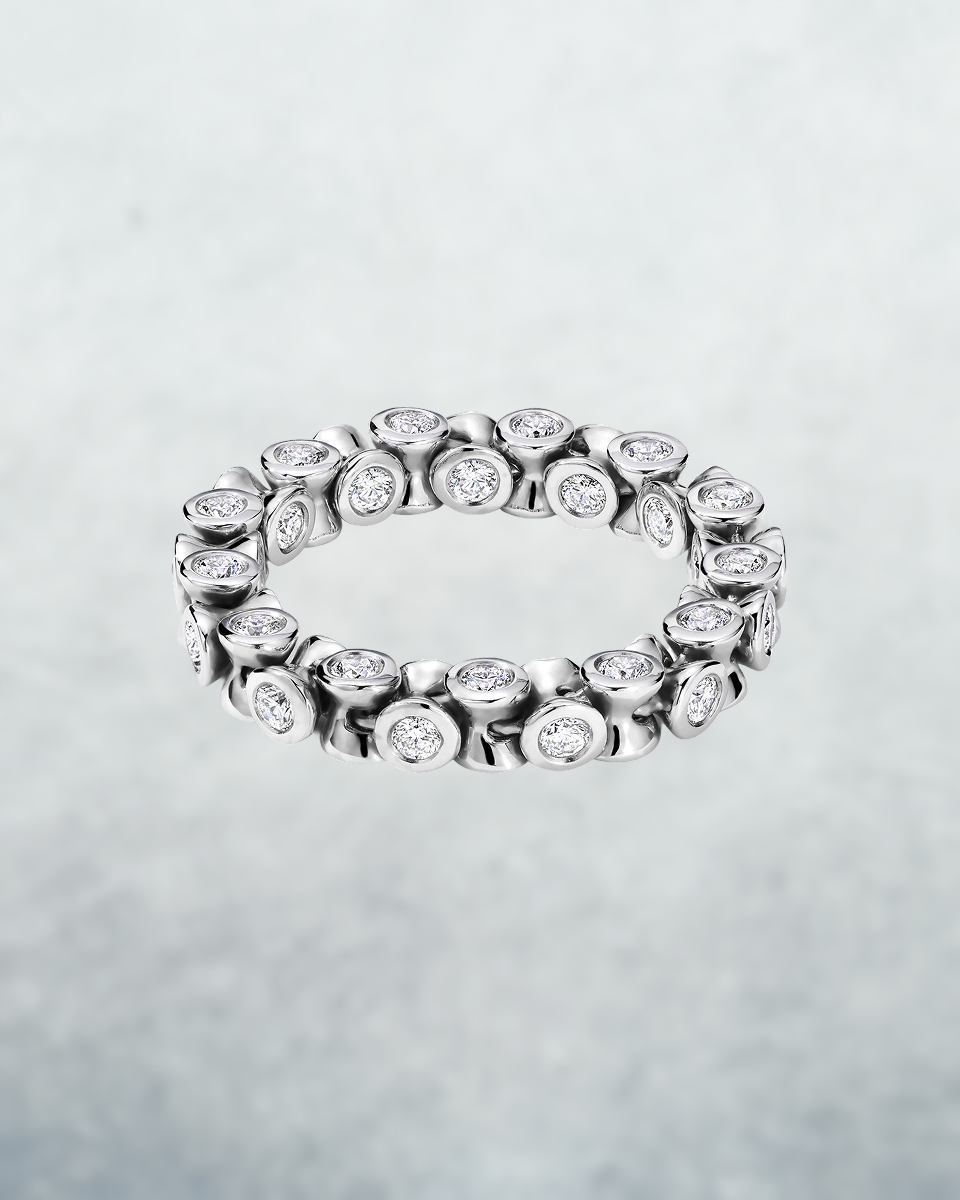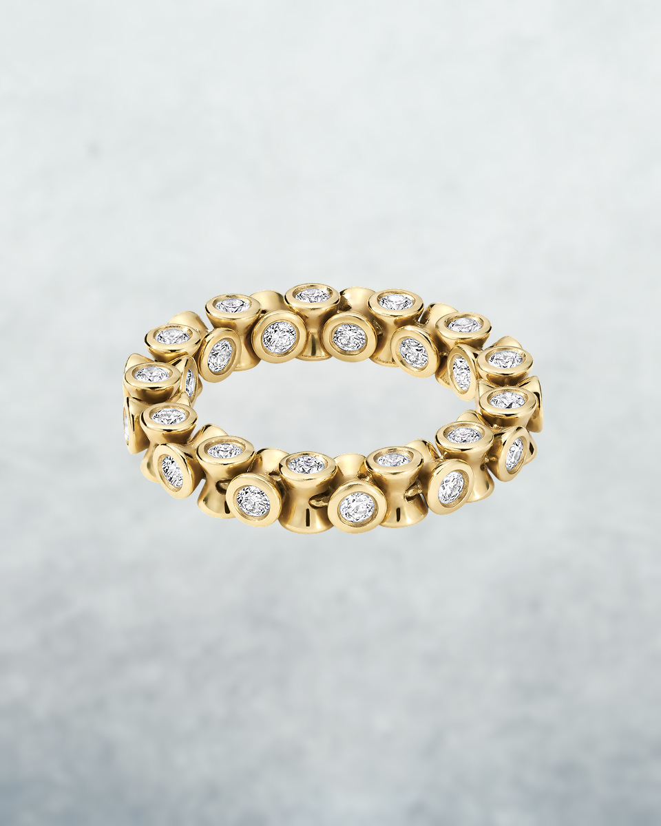The Ourglass Ring is the perfect flirt. Addictively tactile with rotating links in OX’s proprietary design, there is no better fidget. Perfect for stacking or worn on its own. Available in either 18K yellow or white gold.