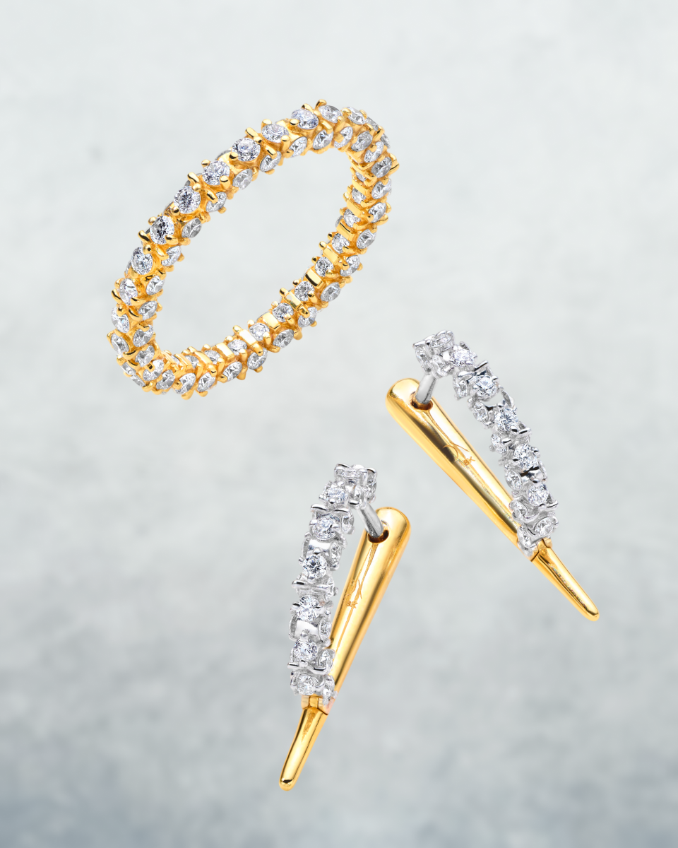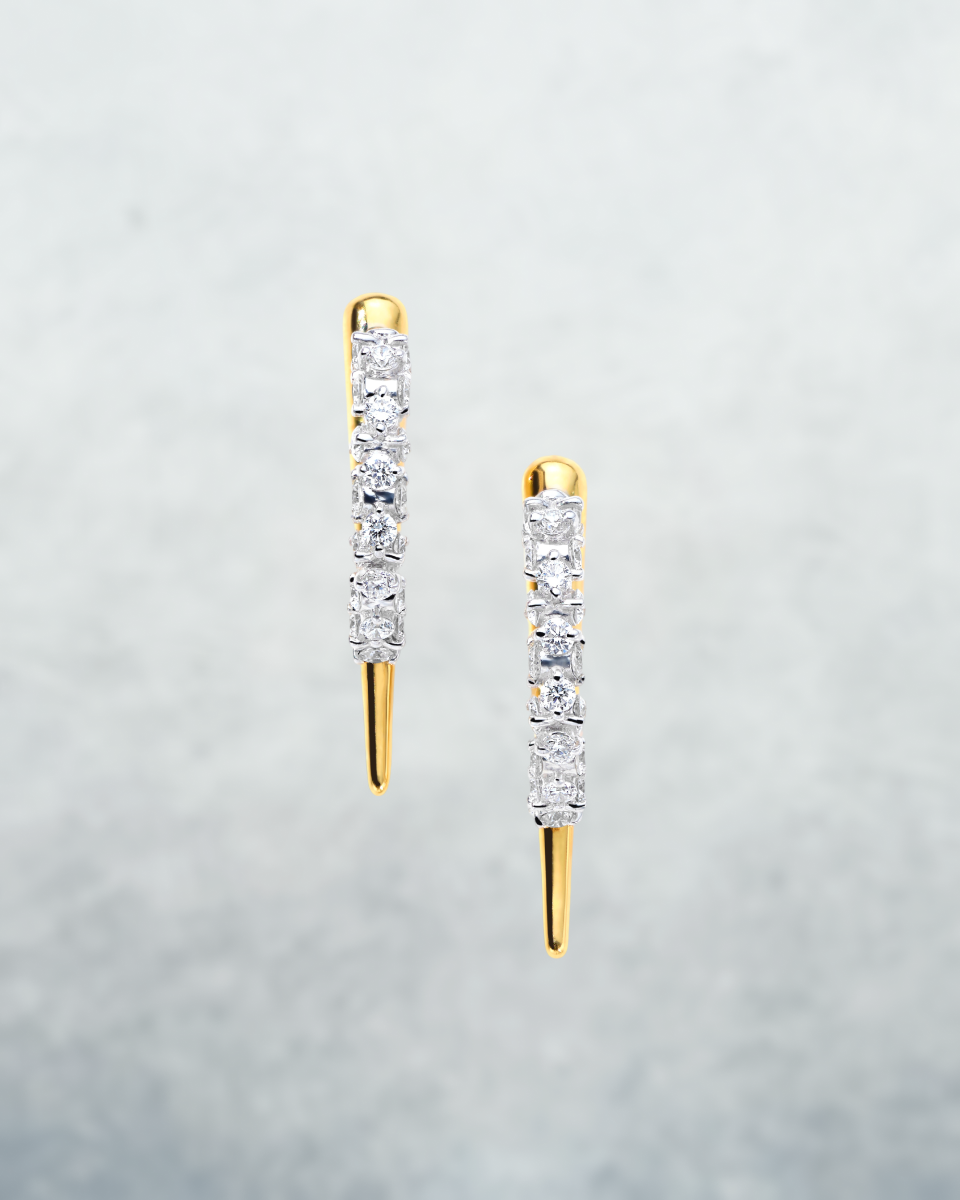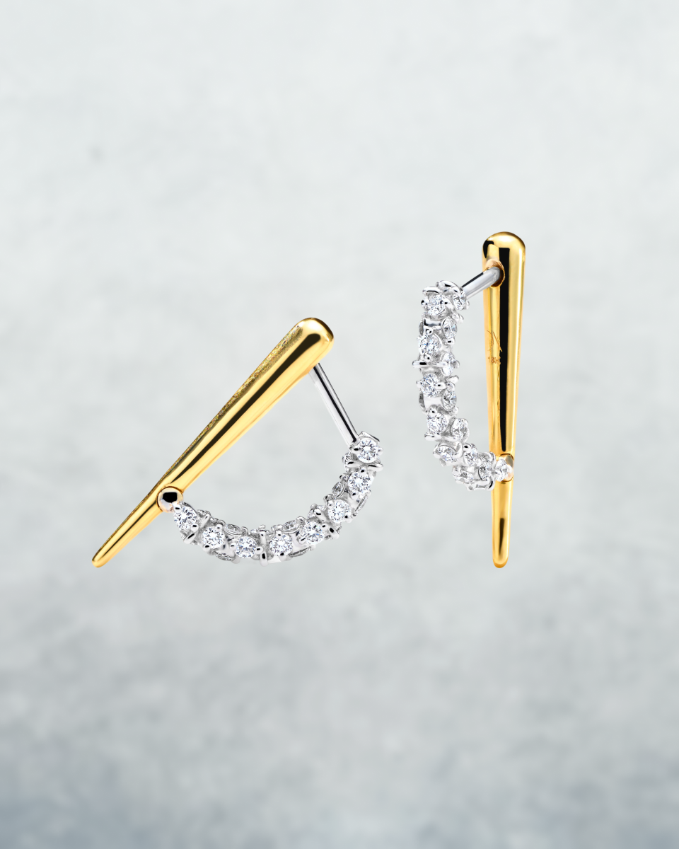 This ultra sleek pair of earrings share the harmony of organic form and piercing lines. Emphasizing duality with texture & tone using both 18K yellow gold and platinum, the Signature Earrings are an everyday classic with an edge.